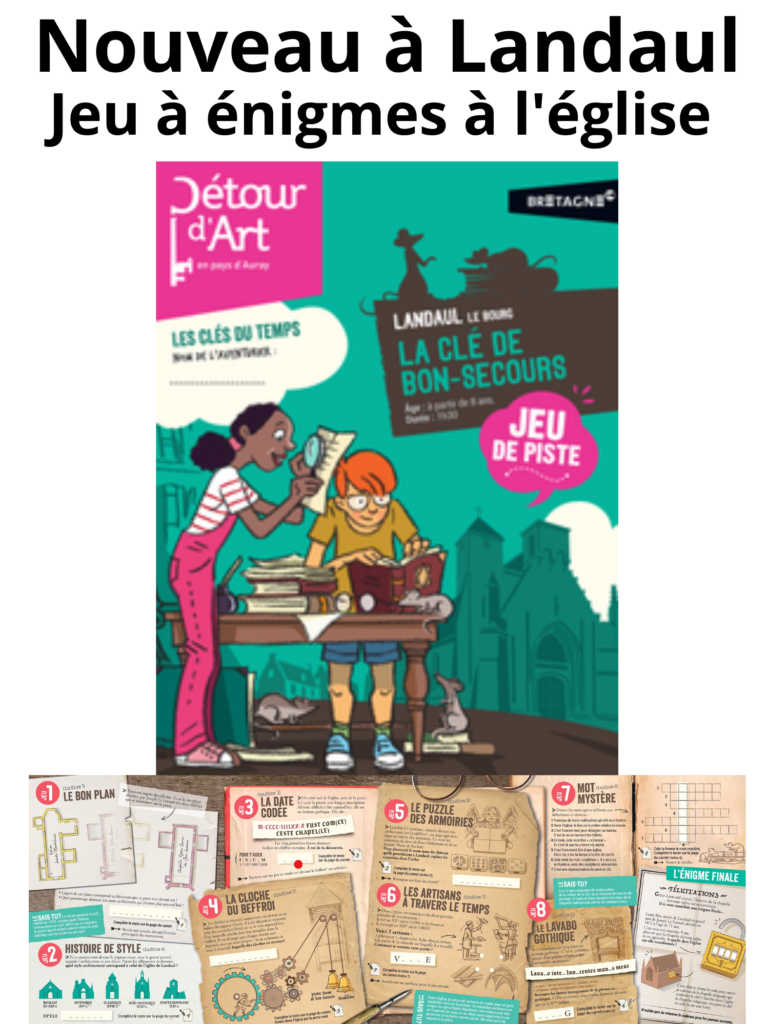 Depuis l’été 2024, le jeu à énigmes « La clé de Bon Secours », cousu main par le service patrimoine d’Auray Quiberon Terre Atlantique pour la commune de Landaul, permet de découvrir en s’amusant les éléments clés de l’histoire de l’église.