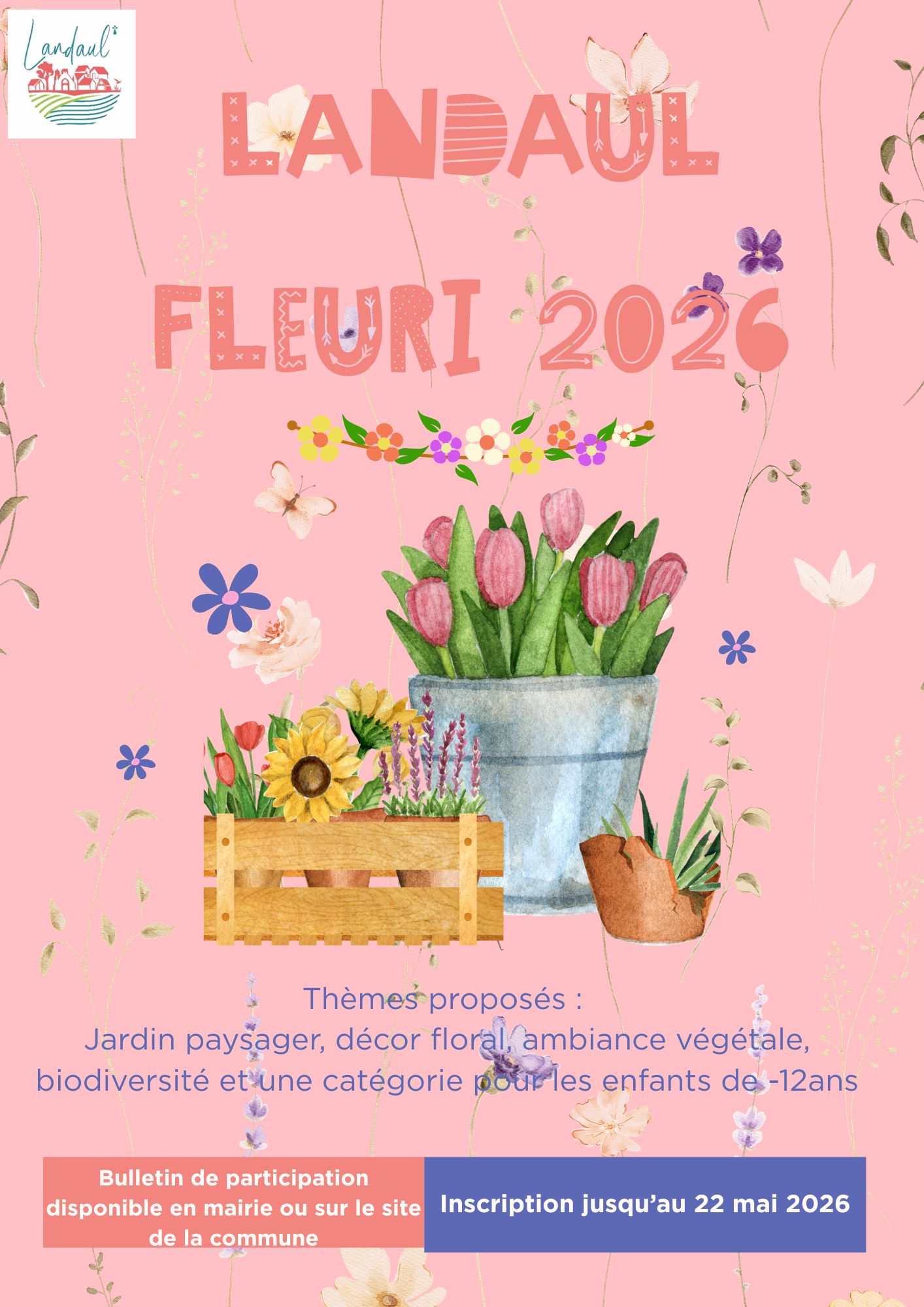 Inscription possible jusqu’au 22 mai 2026, bulletin à déposer en mairie ou à renvoyer par mail à : urbanisme@landaul.fr