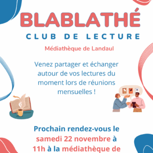 La prochaine réunion du club de lecture de la médiathèque est prévue pour le 22 novembre ! L’occasion de venir partager vos lectures et vos coups de cœur dans une ambiance conviviale. Club gratuit. De 11h à 12h. ...