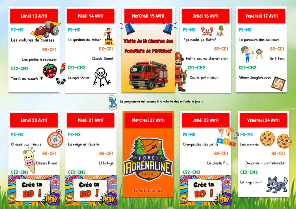 Programme vacances d’avril 2026