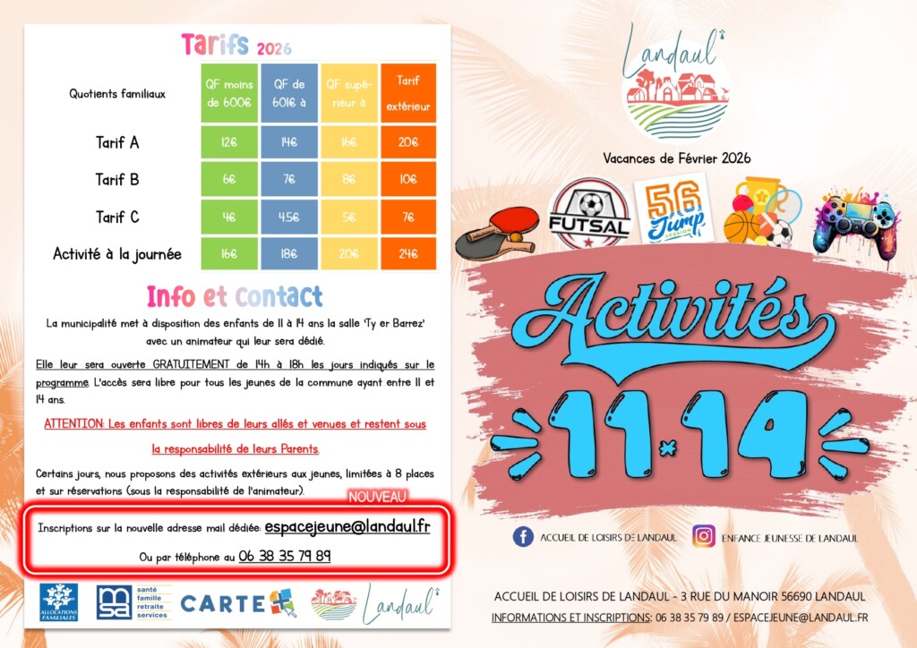 Retrouvez le programme d’activités des vacances de Février 2026 des 11/14 ans ci-dessous :