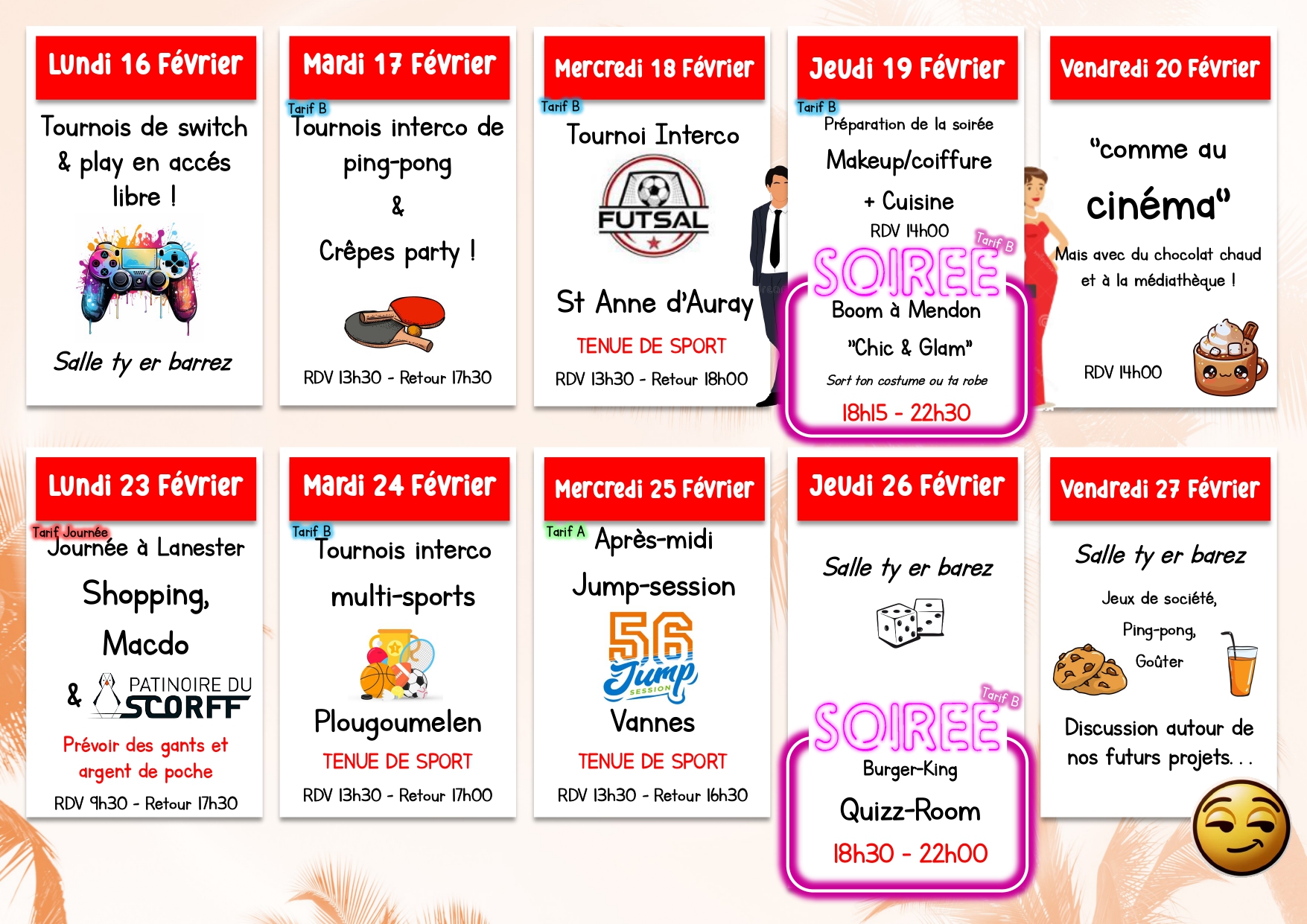 Programme des activités des vacances de Février 2026 des 11/14 ans