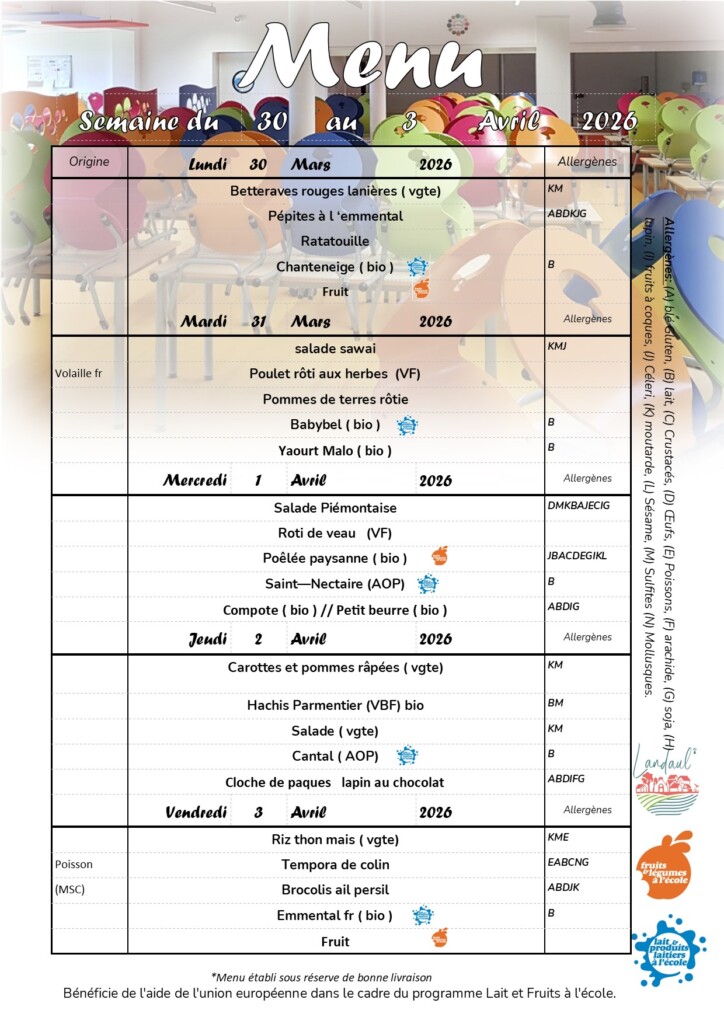 Menus cantine